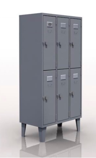 Cada cuerpo está dividido en dos casilleros independientes (superior e inferior), totalizando 6 casilleros individuales, cada uno con puerta propia, sistema de ventilación frontal y porta candado para mayor seguridad.