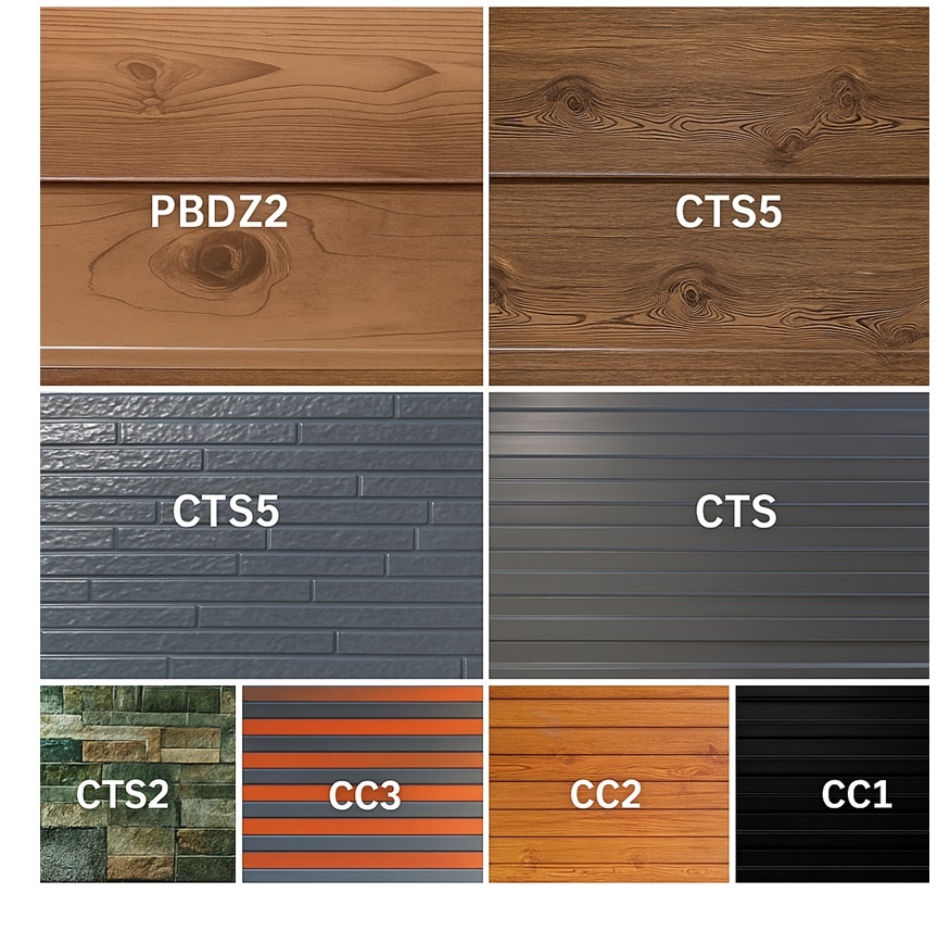 Gran variedad de colores y texturas, incluyendo imitaciones de madera y otros materiales naturales.